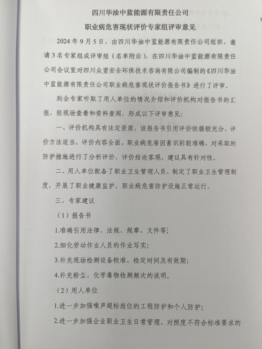 四川华油中蓝能源有限责任公司职业病危害现状评价  |