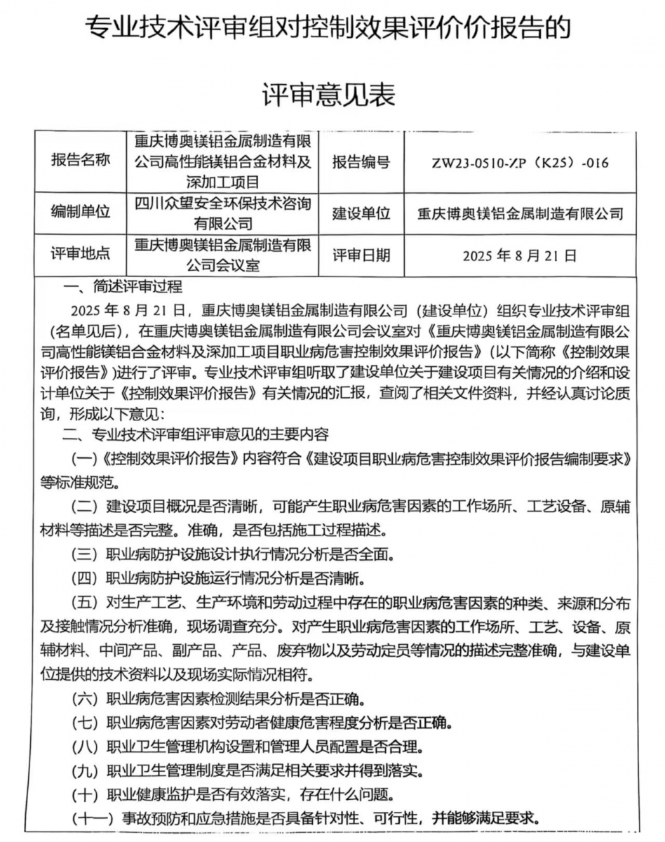 结论:项目控制效果评价判定为“职业病危害风险分类严重”的建设项目。 根据对本项目现场调查、职业病危害因素检测结果和项目相关资料的综合分析,本项目职业卫生防治工作基本符合国家法律、法规的相关规定,采取的职业病防治措施基本可行,日常运行过程中在一定程度上能控制和降低职业病危害因素对作业人员健康的影响,项目在落实了本次评价报告提出的补充措施和建议后,能够满足职业病防治工作的需要。本项目已具备职业病防护设施竣工验收的条件。 建议:
